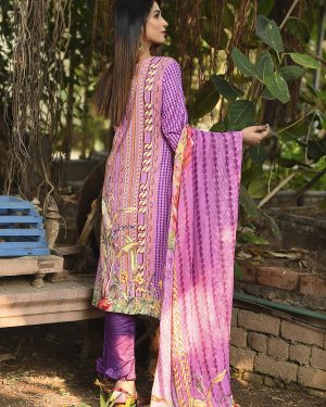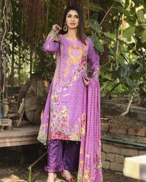 Quality: Digitel Premium Lawn Embroidered Shirt 90/88 Digital Krinkel Embroidered Dupatta Dyed Troused